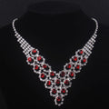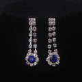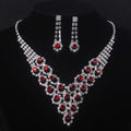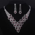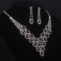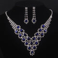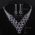 High end and elegant bridal accessories, including a necklace and a pair of earrings, set in blue, red, and purple. Bridal acces