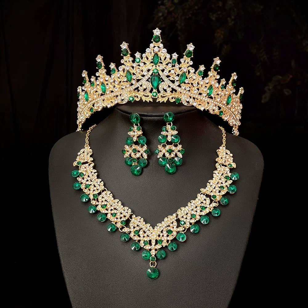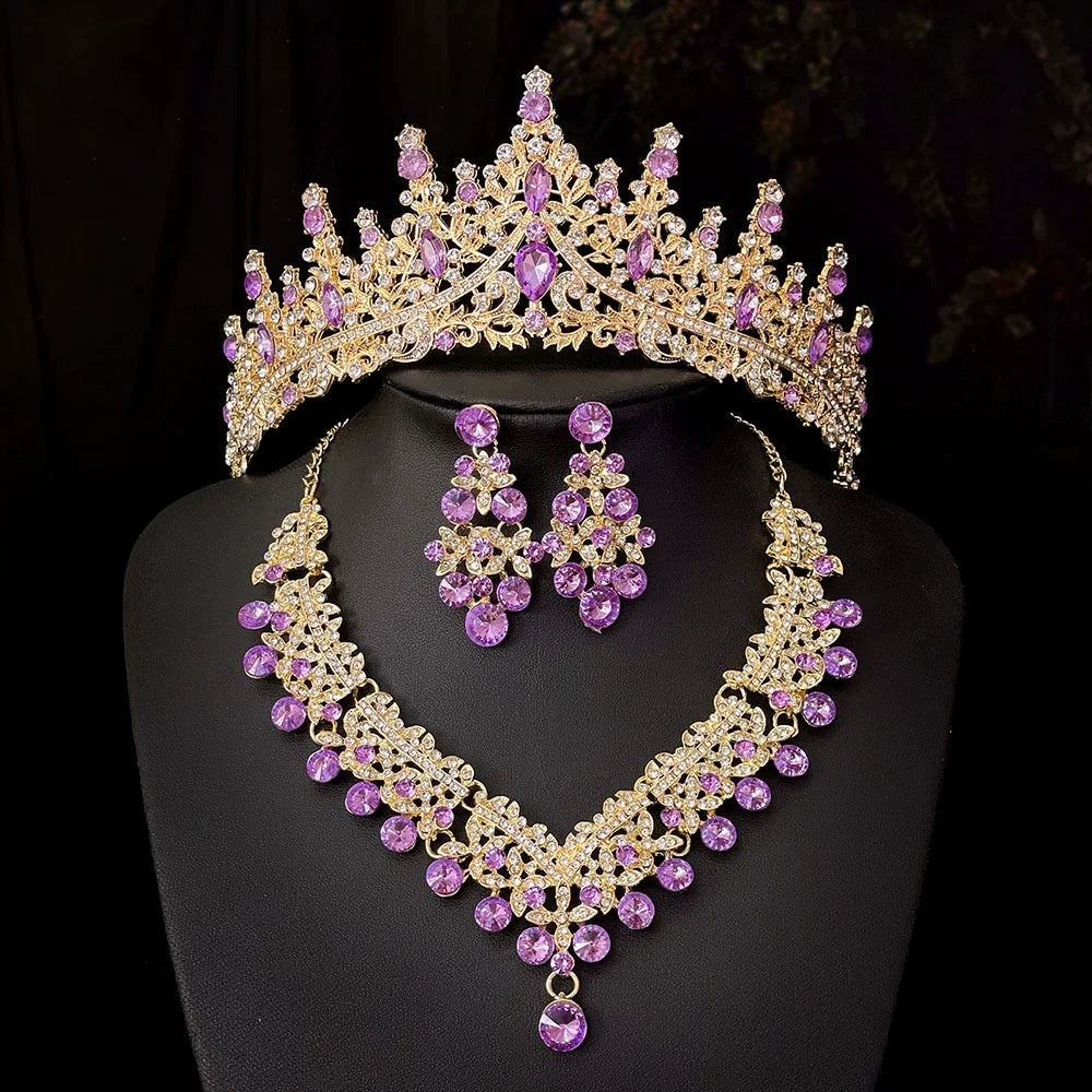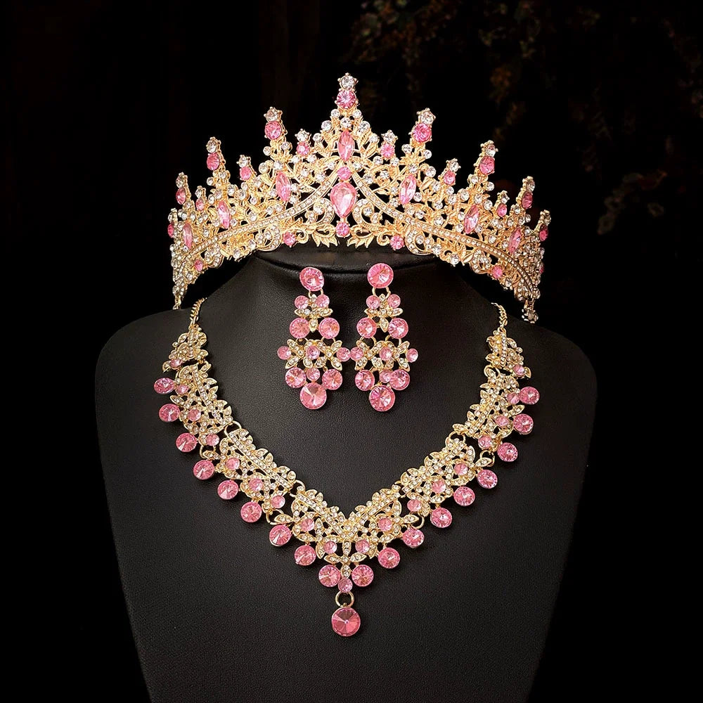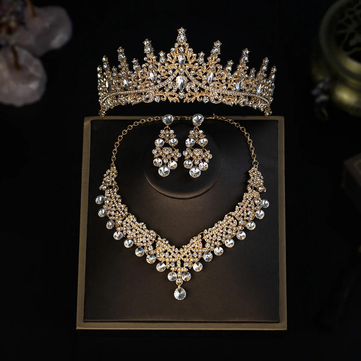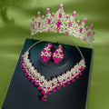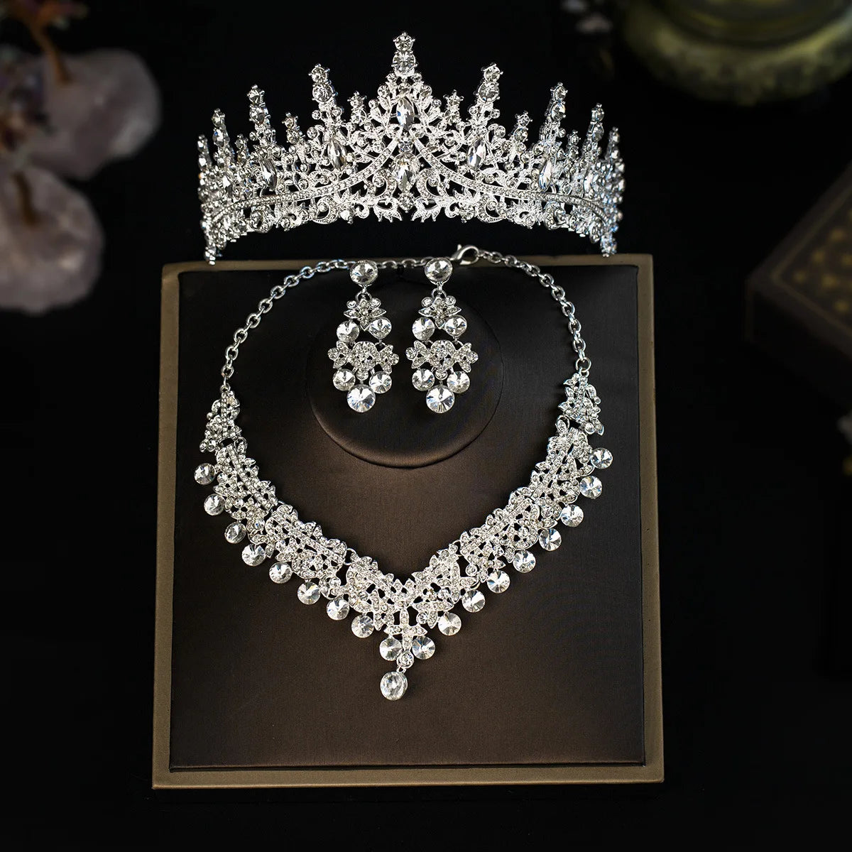 New Bridal Crown Three Piece Set Wedding Crown Headpiece Necklace Earrings Korean Super Fairy Wedding Dress Accessories